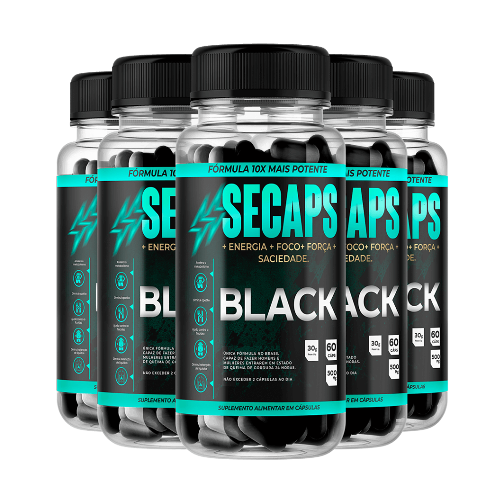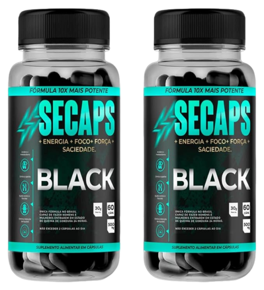 SECAPS BLACK é 100% natural e seguro. Pode causar leve aumento da temperatura corporal (efeito termogênico normal). Não recomendado para menores de 18 anos, gestantes ou pessoas com problemas cardíacos.